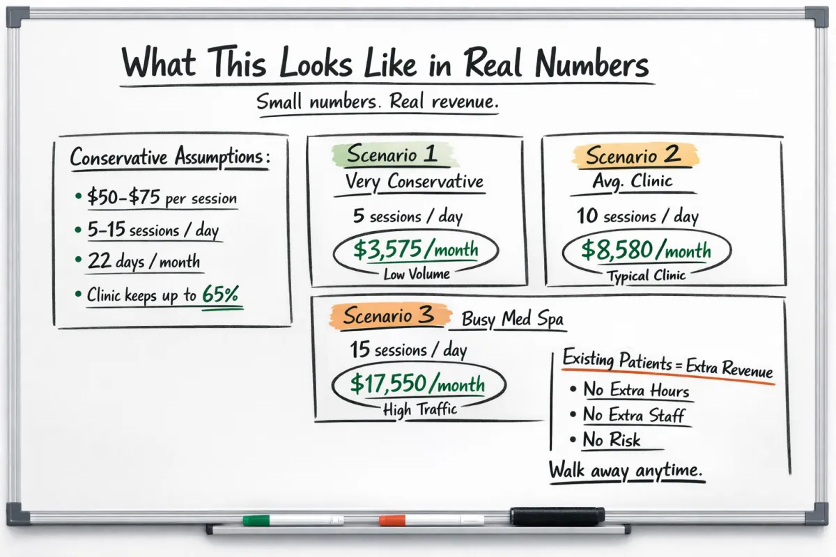 Especially clinics looking to add a premium wellness service without taking on financial risk.